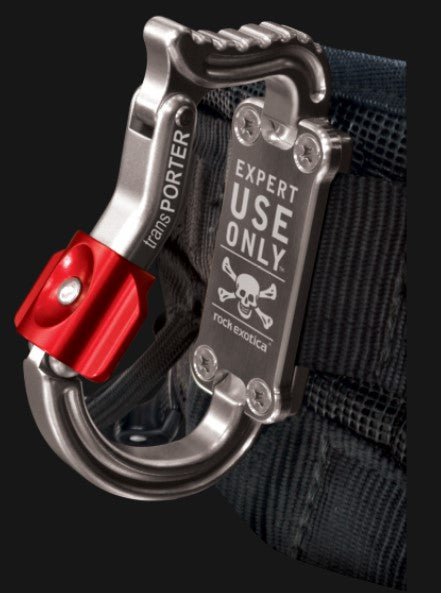 Rock Exotica Transporter (C5 M) är en professionell verktygshållare utvecklad för arborister, klättrare och industriella användare som kräver pålitlig och säker förvaring av verktyg. Med sin innovativa dubbla tryckknappsmekanism låses hållaren säkert när så önskas, samtidigt som den snabbt kan öppnas för enkel åtkomst till utrustningen. Den breda basen säkerställer en styv och stabil montering på selen eller bältet, vilket håller Transporter upprätt och förutsägbart på plats även under intensiv användning i träd eller på höjd.