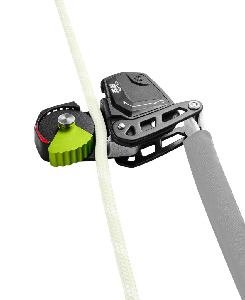 FUSE kan fästas på och tas bort från repet utan att separeras från karabinern. I kombination med de lätta och kompakta DEFUSER energidämpare (S, L eller RESCUE) är den maximala stoppstöten 30 % under standarden. Olika dämpningslängder och prestandaparametrar garanterar optimal hantering – även för räddningsoperationer och horisontell användning.