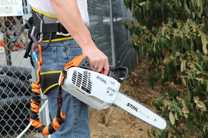 Shembiner XL är en ultralätt aluminiumkrok som fästs på arboristselen och är tillräckligt bred för att motorsågens handtag ska passa direkt in i kroken. Detta möjliggör blixtsnabb av- och påfästning av motorsågar och verktyg utan besvär med grindar eller mekaniska delar. En extra håla i kroppen gör det möjligt att direkt fästa motorsågsrep eller extra utrustning, vilket ökar flexibiliten i trädkronan.