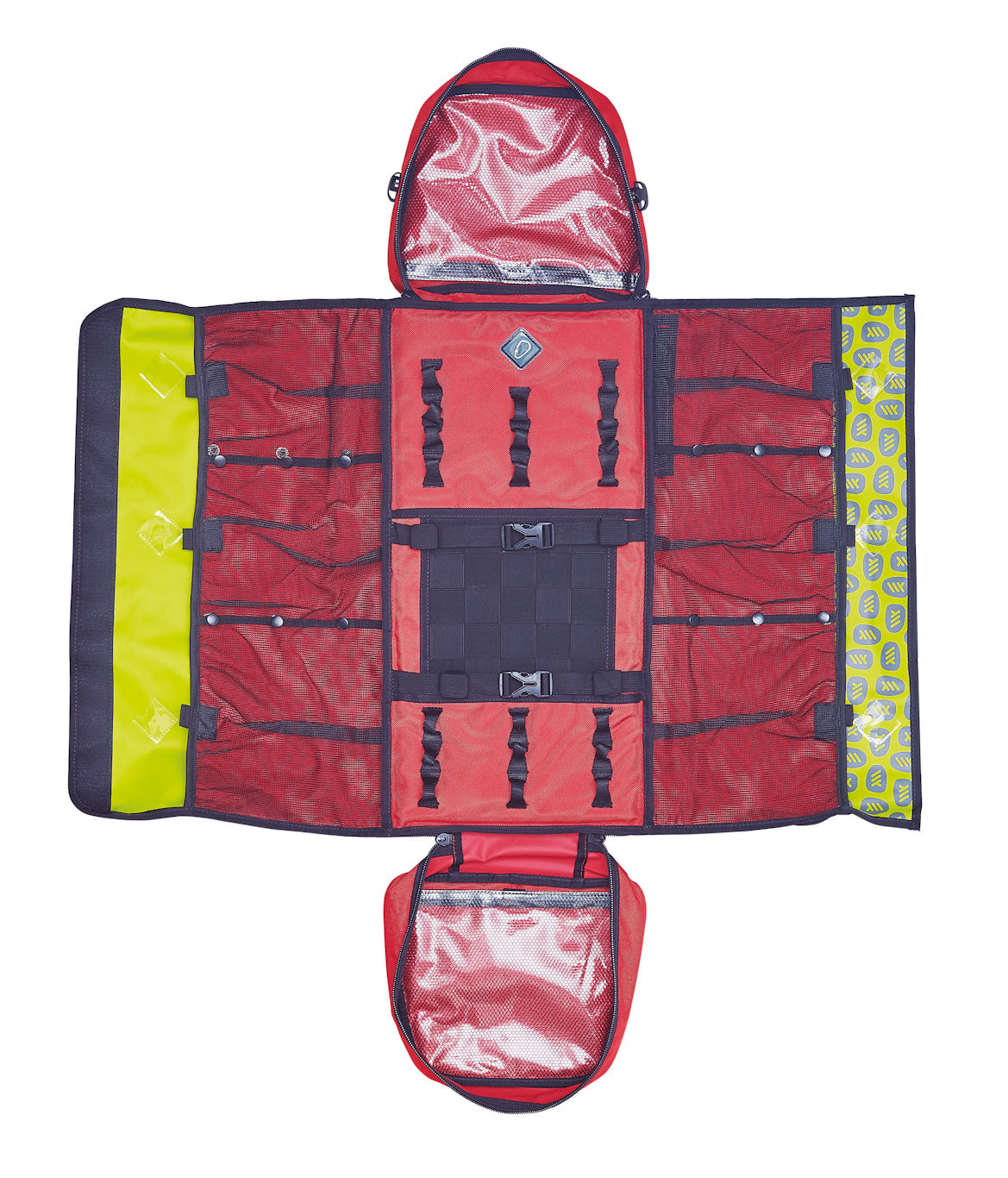 Cross Pro-väskan är den första transportväskan som kan förvandlas till en utrustningsbutik. Den ger dig en överblick över all din utrustning. Cross Pro kan innehålla all säkerhetsutrustning du behöver. Användarvänlig, du kan enkelt komma åt alla innerfickor och fästa alla dina karbinhakar och tillbehör.