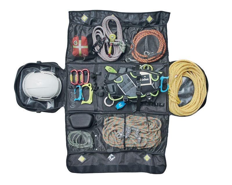 Courant Cross Pro XL är en rymlig och revolutionerande väska för arborister. Den omvandlas snabbt till en organiserad arbetsstation och ger enkel åtkomst till all din utrustning.