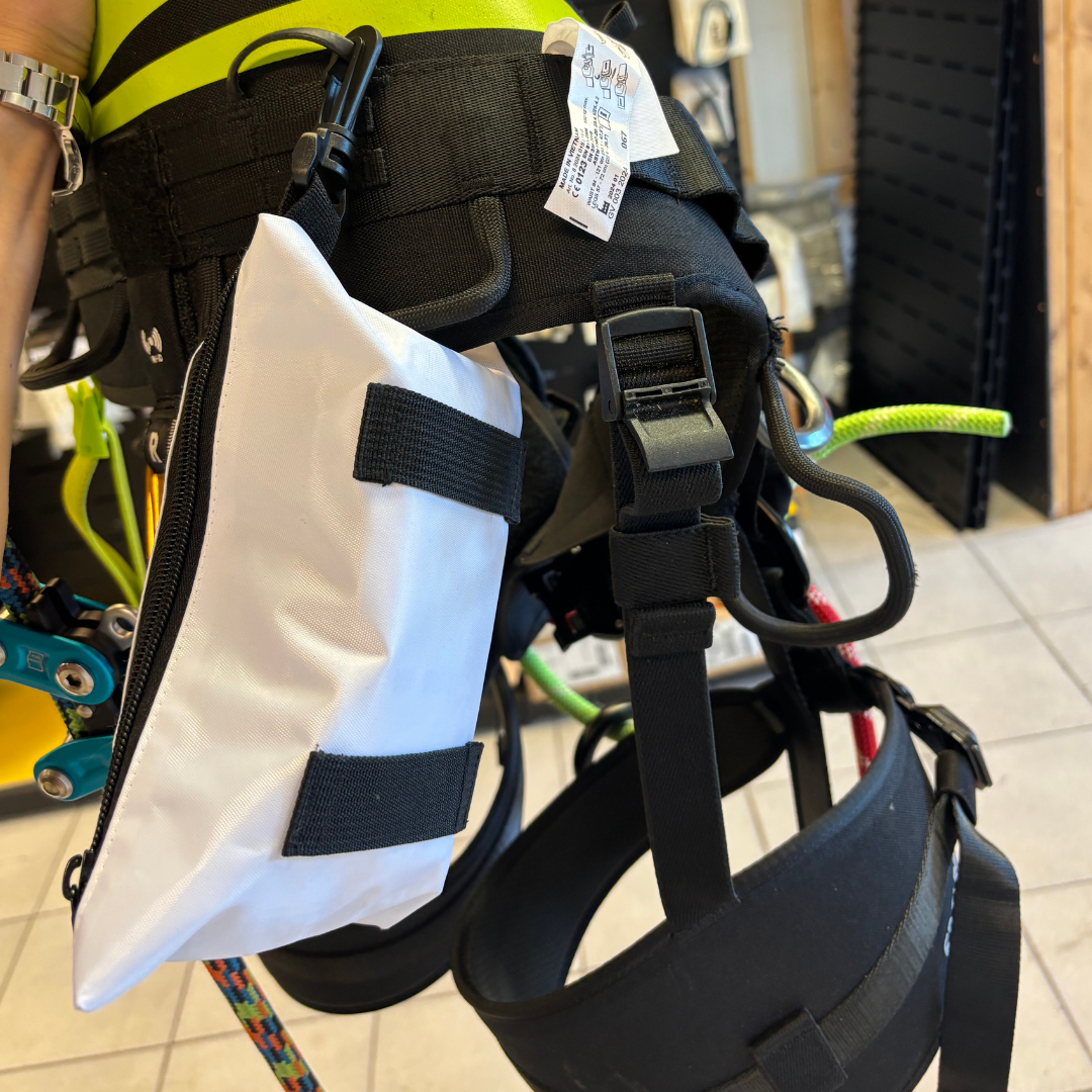 - Fodral: Slitstarkt nylon med förstärkta sömmar, karbinhake och fästanordning för sele