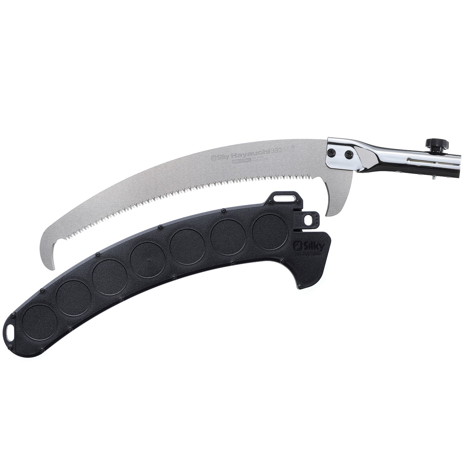 SILKY Hayauchi är en högkvalitativ stångsåg speciellt utvecklad för arborister och trädvårdare. Med patenterad snabbkoppling via tryckknappar monteras sågbladet blixtsnabbt och säkert. Det utdragbara teleskopskaftet i aluminium har en bashöjd på cirka 2 meter och ett ovalt, stabilt skaft som ger utmärkt kontroll och minimerad vibration. Sågbladet på 390 mm med 6,5 tänder per 30 mm och fyra tandrader skär effektivt genom grova grenar utan att fastna. Den låga vikten reducerar risken för belastningsskador, och sågen levereras komplett med blad och hårdplastskydd. Perfekt för stamkvistning och alla former av trädbeskärning.