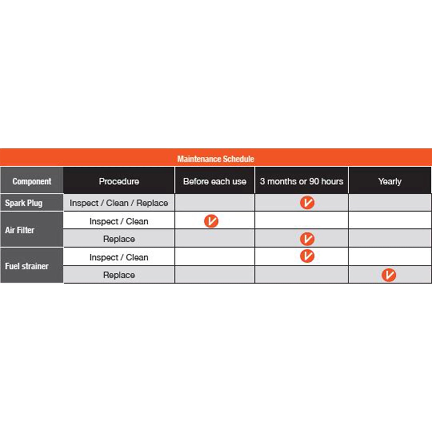 • Serviceintervall: Rekommenderas vid varje 50:e timme eller enligt bruksanvisning