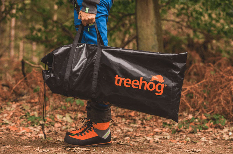 MESH Guard System från Treehog skyddar effektivt mot stenskott och flygande material vid stubbfräsning. Systemet är enkelt att montera och transportera, vilket gör det idealiskt för professionella arborister och skogsarbetare.