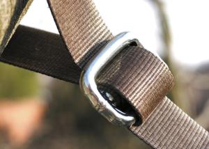 - Som regel försöker man använda gafflar när man säkrar i kronområdet. Om detta inte är möjligt kan surrningsband dras in mellan slangen och bandet och fästas på grenen eller stammen. Detta förhindrar att bandet glider. Med det integrerade expansionselementet förhindrar våra spännband till stor del inväxning.