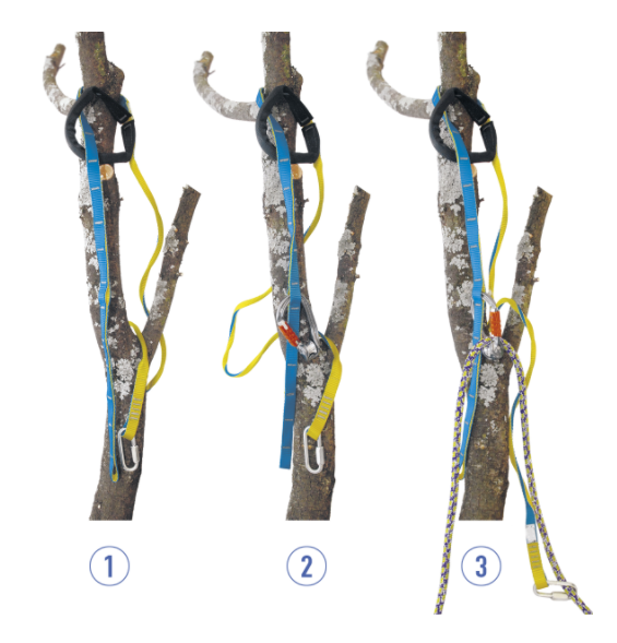 Shortened, this cambium saver is very practical to prune in the tree top, a longer or lengthened version will give more freedom of movement to walk in the tree (around the axis).