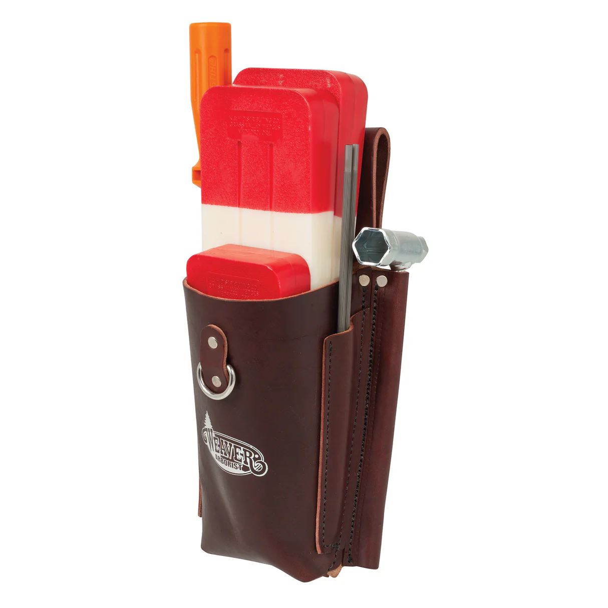 Keep your wedges within reach with this convenient leather Wedge Pouch. Compatible with all Weaver Leather Logging Belts, this pouch holds up to four wedges and features a dee and pockets for additional tool storage.