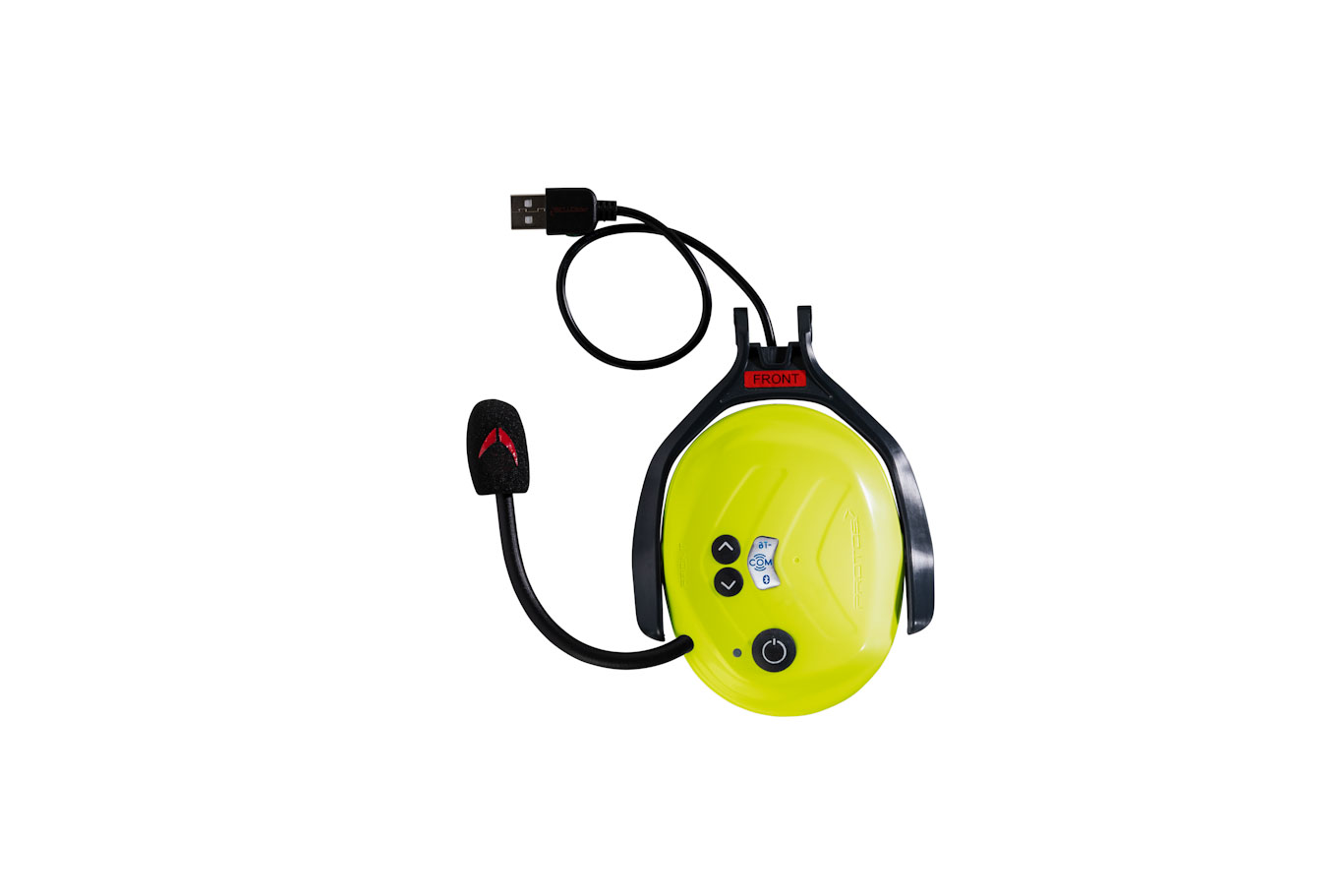 Thanks to a single multi-function button and two volume buttons, the PROTOS Bluetooth® communication system can be easily operated with just one finger. The whole technology is built into the ear muff, whereby the absence of cables guarantees an unrestricted freedom of movement. Through the included USB loading bracket, the BT-COM can be recharged easily at any USB port.