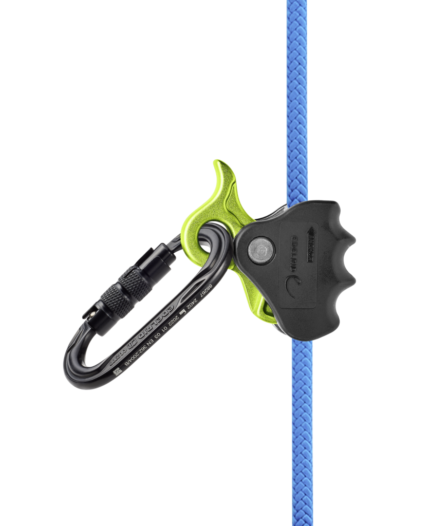 Wire Core flipline with swivel carabiner and rope grab with HMS carabiner.