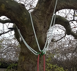 2. As a Y anchor with 2 redundantly secured anchor points. This configuration provides the safety of a second anchor point in the event that a limb breaks.