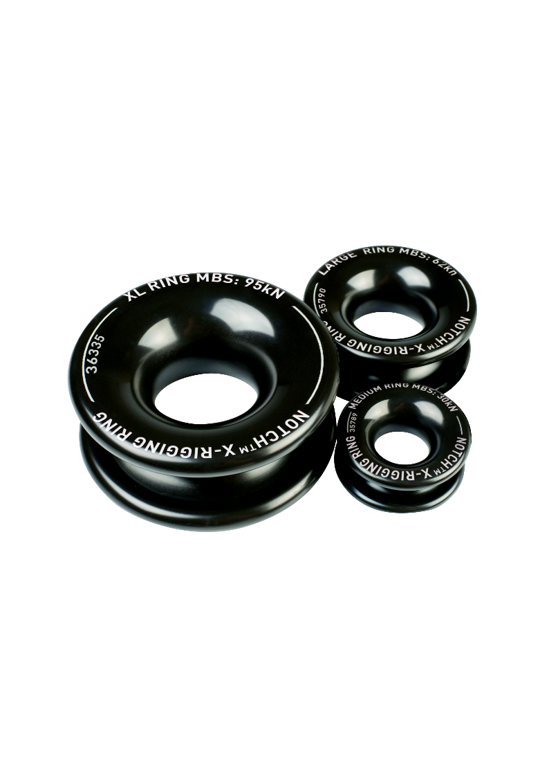 - Notch Rigging -renkaat kolmessa eri koossa 20x14 mm, 28x20 tai 28x28 mm.