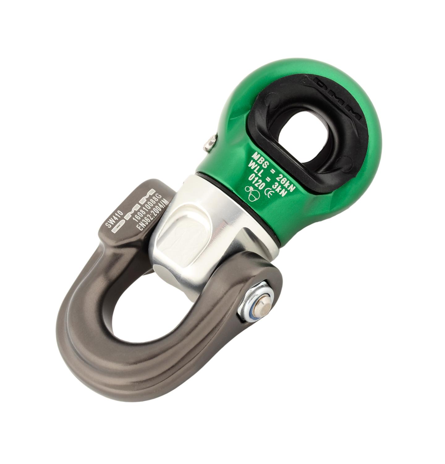 Eftermonterbara svivelkonverterare. Den tvåvägs låsbara spindeln i schackeln möjliggör anslutning till fasta öglor som vajerstroppar, riggplattor och selbryggor. Den fasta öglan kan klippas (med ett Prest-in konfigurationshjälpmedel om det behövs), skarvas in, svetsas in etc. efter behov. Finns i två schackelstorlekar beroende på belastningskraven. Den lilla D-formade schackeln håller enkelinfästningar snygga och förutsägbara medan den ökade storleken på den bågformade schackeln gör det möjligt att uppnå komplexa uppställningar genom att ta hänsyn till belastning över schackeln.