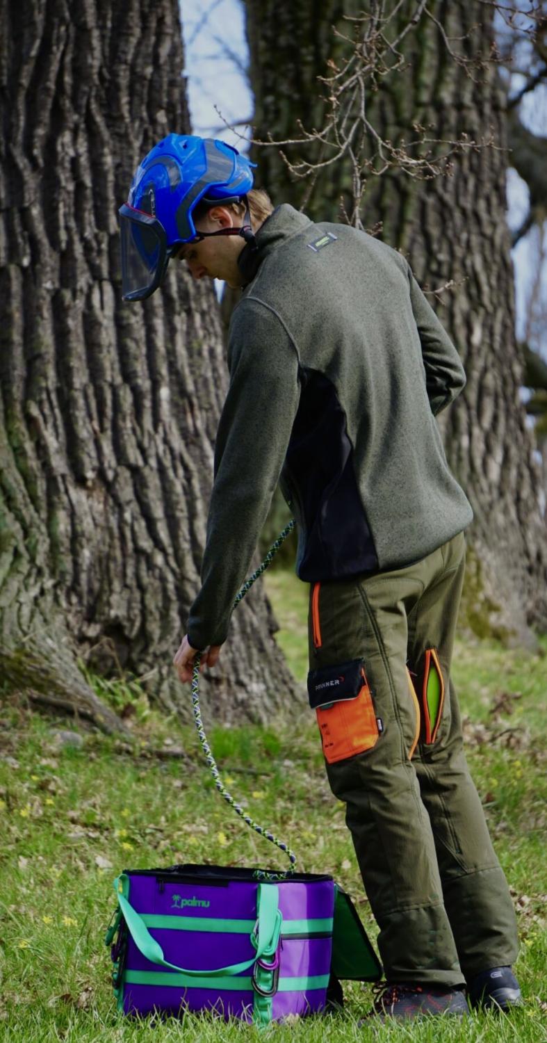Palmu-repväskan är skräddarsydd för professionella arborister och är ett genombrott inom förvaring och underhåll av utrustning. Den har en unik kvadratisk design för enkel förvaring, snabbtorkande ventiler för fukthantering och är tillverkad av slitstark vattentät PVC. Med ergonomiska ryggsäcksremmar, förstärkta paneler och gott om förvaringsfickor är Palmu den perfekta sammansmältningen av form och funktion, vilket säkerställer att din utrustning är skyddad och tillgänglig när du behöver den.