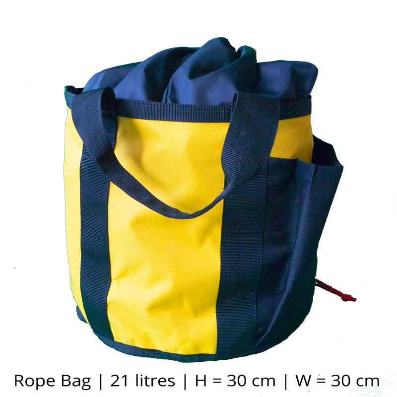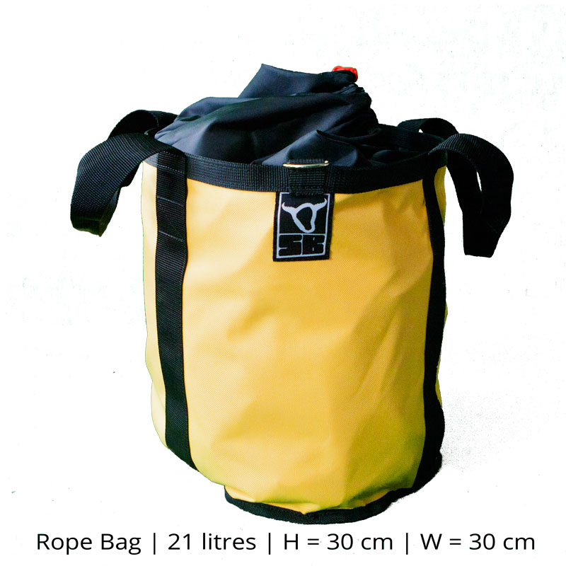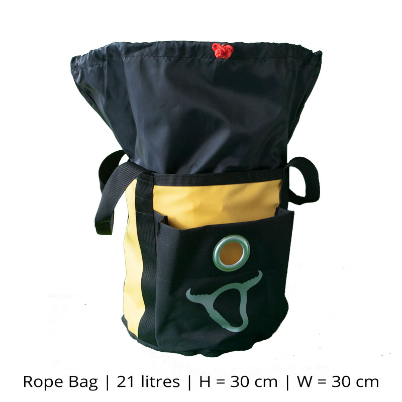 Robust väska med fästen för verktyg, clips och öglor för extra karbinhakar. Med stabila bärremmar och sidofickor är denna väska idealisk för nedfirningslinor, repbromsar, slingor och alla andra viktiga saker. Öppningen fälls enkelt tillbaka över den övre kanten och lämnar väskan öppen och upprätt som en hink. Riggväskan är också idealisk för att bära klättrarens PPE.